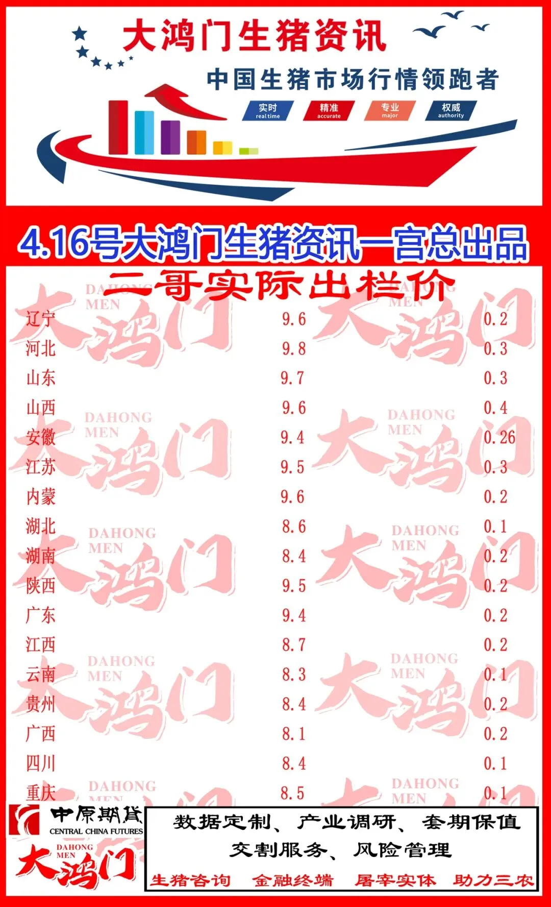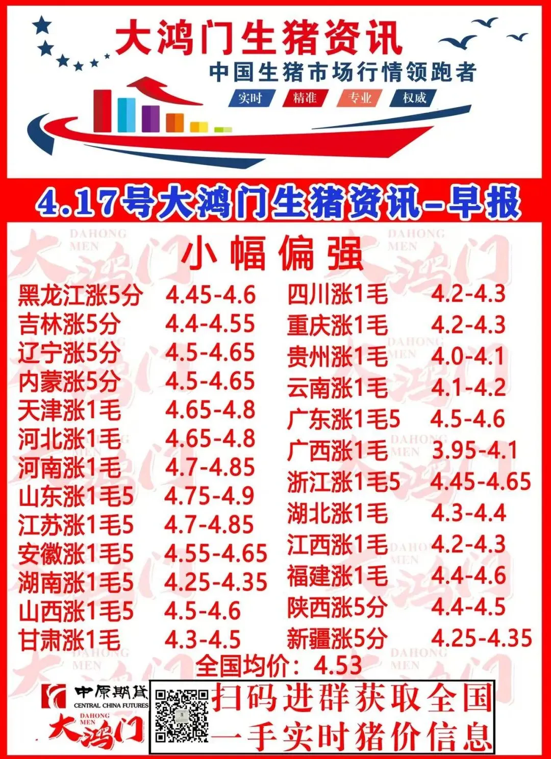 2026年04月16日 广东区二元杂接货价上调为4.4元/斤 三元杂接货价上调为4.7元/斤
