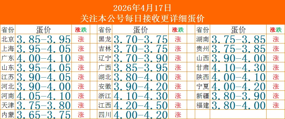 下图为4月17日全国鸡蛋价格表?仅供参考!