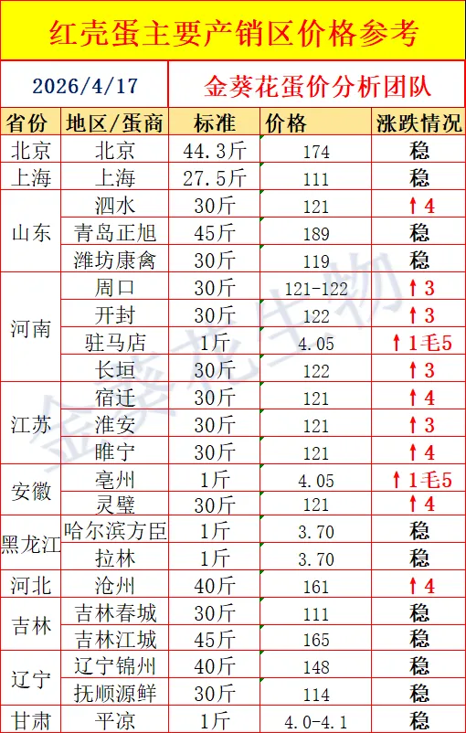 【蛋价预报】2026-4-17最新鸡蛋价格(蛋价齐发力,再次拉升上涨)