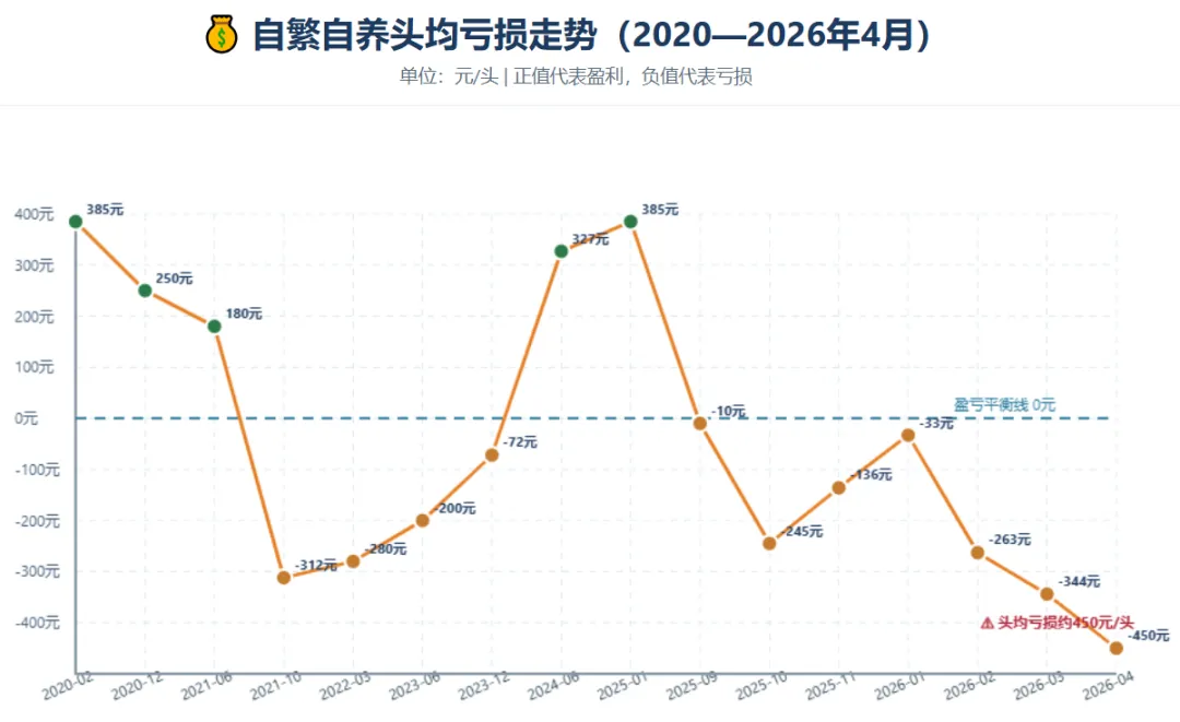 头均亏损:扩大至450元/头,远超上一轮周期极值,行业现金流加速枯竭;