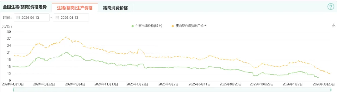 4月14日,国家统计局发布最新数据:2026年4月上旬生猪(外三元)价格为9.1元/千克,环比下降4.2%,全国30个监测省份生猪价格全部下跌。