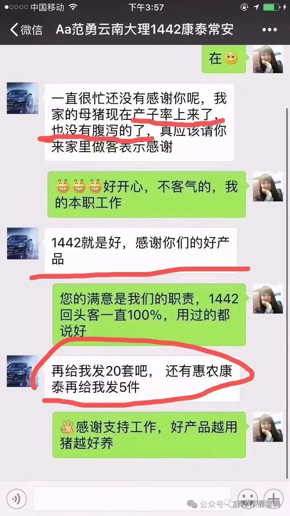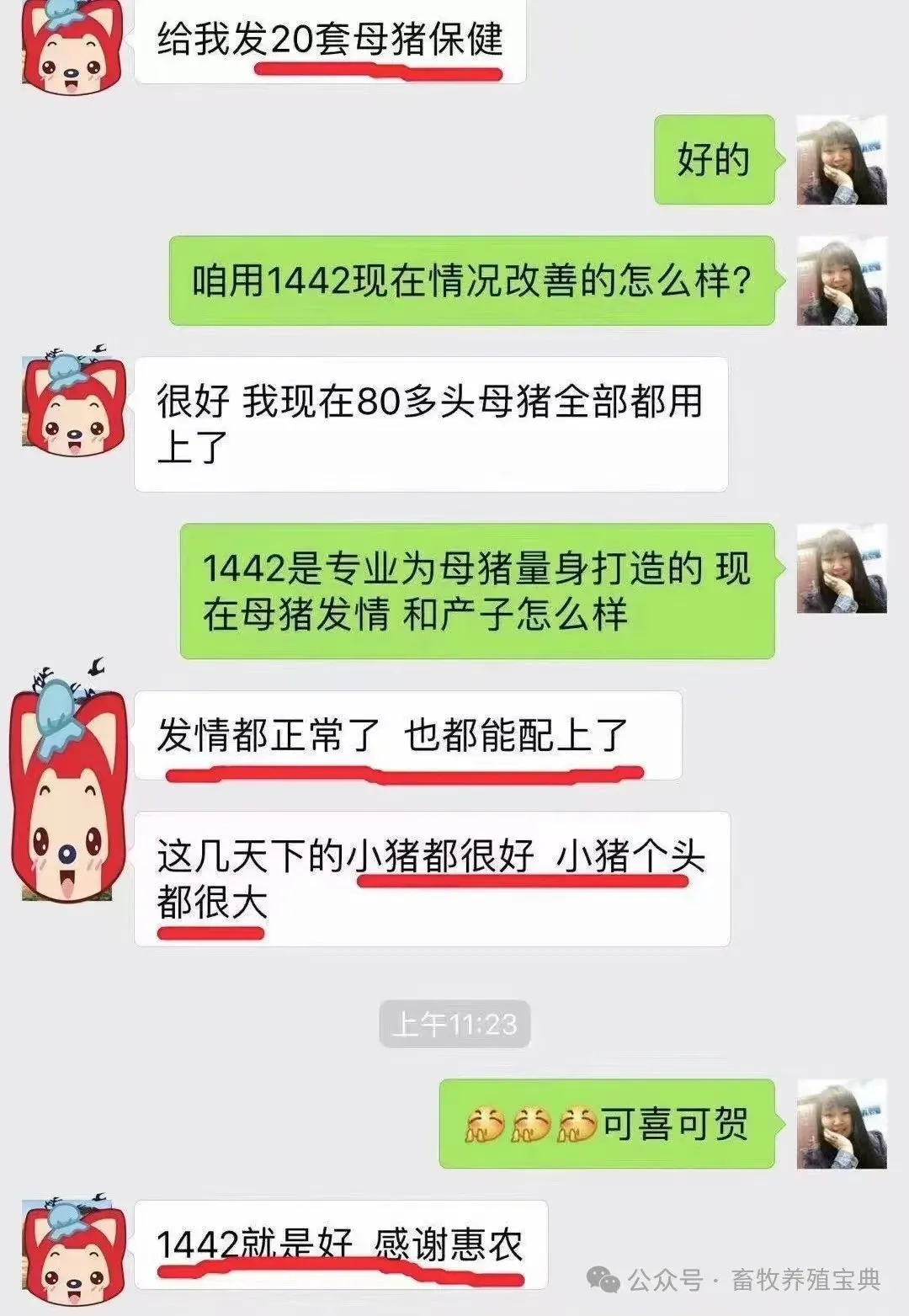 1442母猪保健部分客户反馈