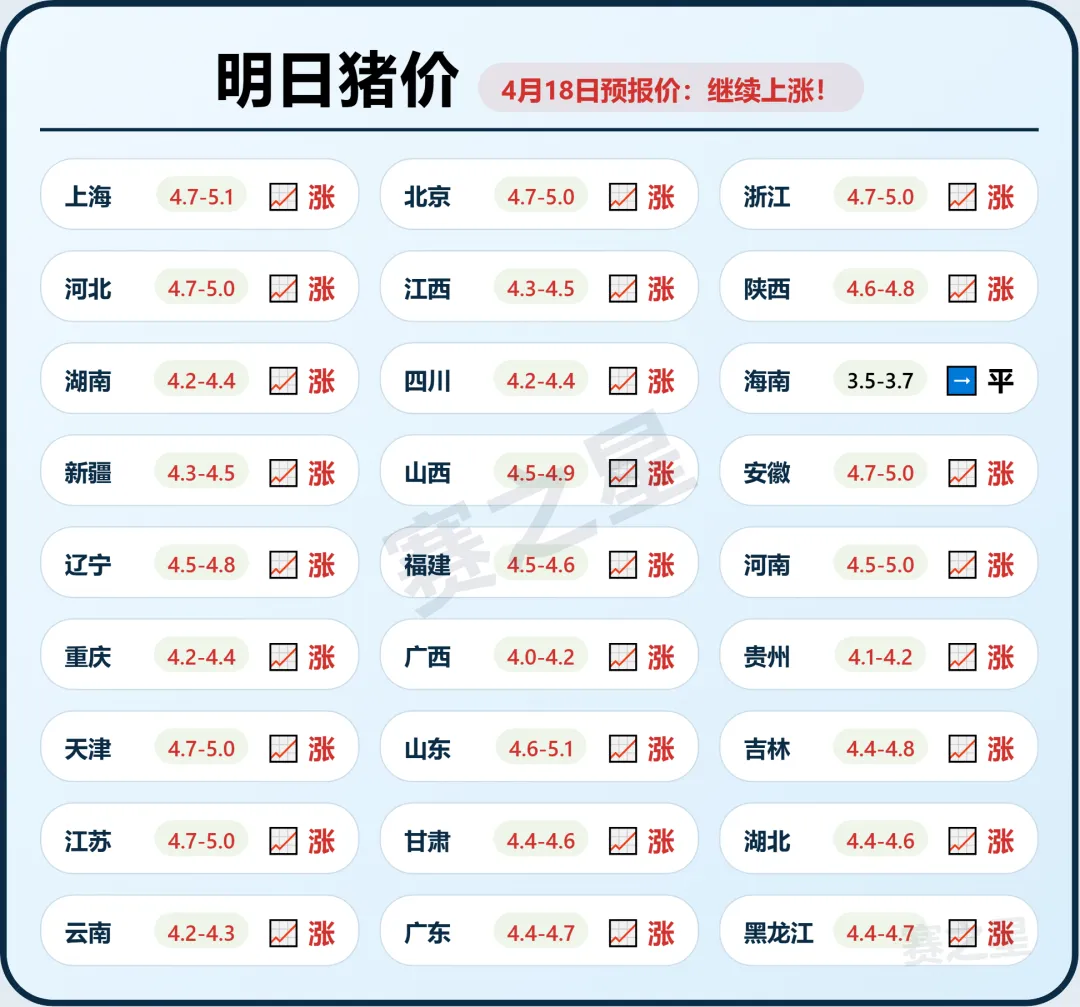 4月18日最新猪价 养羊网 2026-04-17 4月18日最新猪价 养羊网 2026-04-17 上一篇:猪价反弹,至暗时刻已过? 下一篇:小欣说猪价 您可能还会对下面的文章感兴趣111: 相关文章 2025年4月13日全国各地生猪价格信息 【科普】日本的鸡蛋为什么可以生吃 超过五块钱的活动不要再叫我了 事业单位入职十个月总算收到工资
