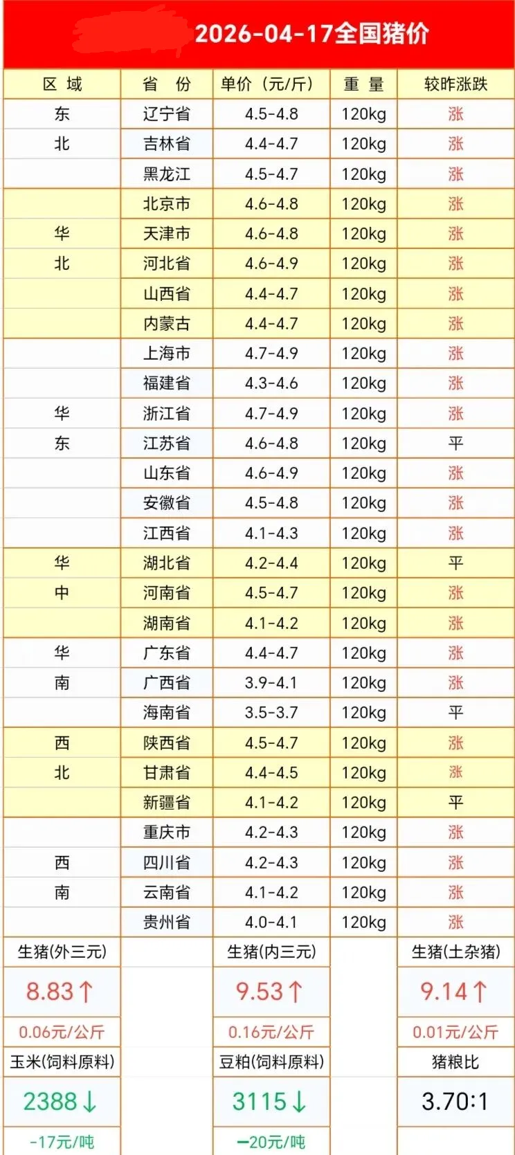 山东慧丰源4月17日猪价行情 养羊网 2026-04-17 山东慧丰源4月17日猪价行情 养羊网 2026-04-17 上一篇:【猪价早报】2026. 4 . 18全国猪价!继续上涨! 下一篇:2026.04.17鸡蛋价格行情 您可能还会对下面的文章感兴趣111: 相关文章 2026年1月26日-鸡蛋价格 “中国超市鸡蛋4元五百克,但代价是什么” 大连香炉礁活羊大串(尽误入点评第一家!) 建议今天可以关注