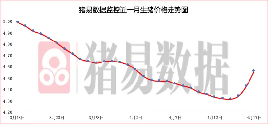 据猪易数据监测数据显示,2026年4月17日标准体重生猪平均价格为9.12元/公斤,较昨日猪价上涨0.26元/公斤,涨幅2.93%,同比25年同期14.90元/公斤下跌5.78元/公斤,跌幅38.79%。