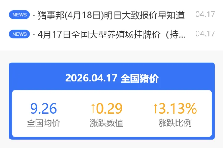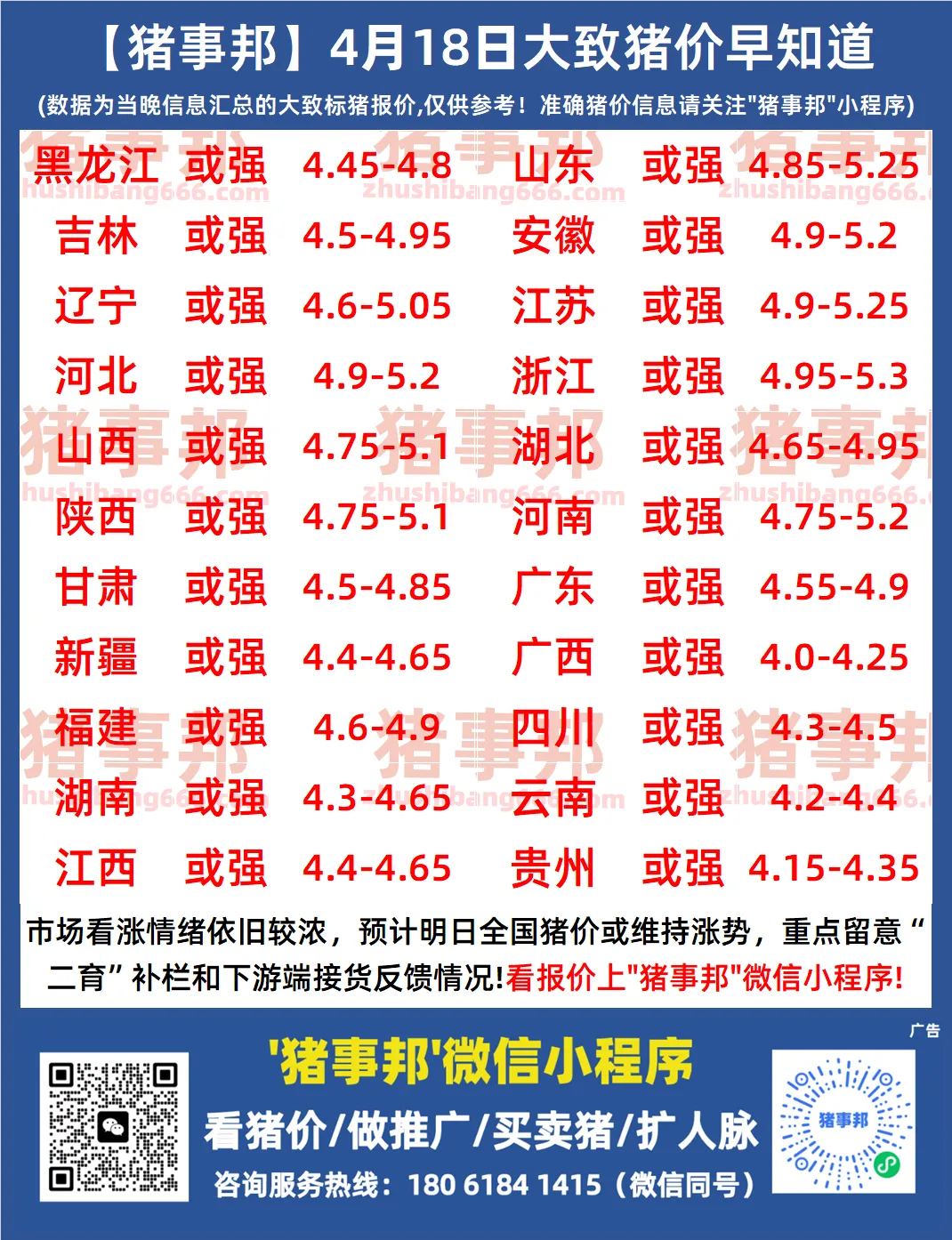 猪事帮|| 4月18日猪价早知道(或继续主线上涨!)