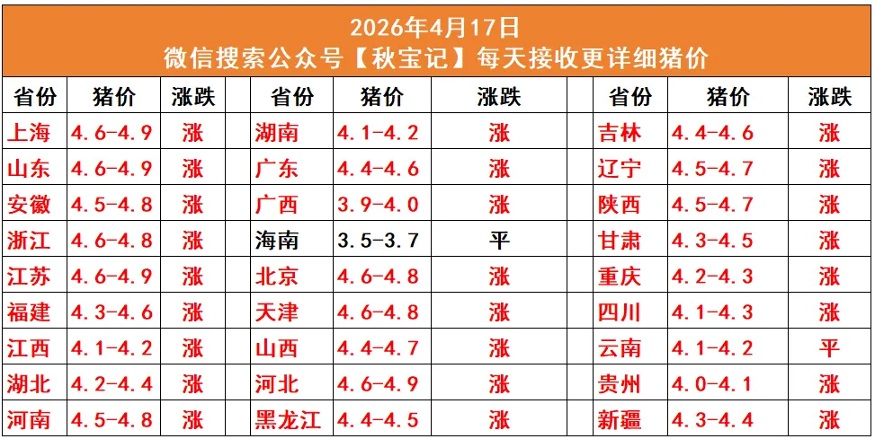 今日猪价2026.4.17(仅供参考)