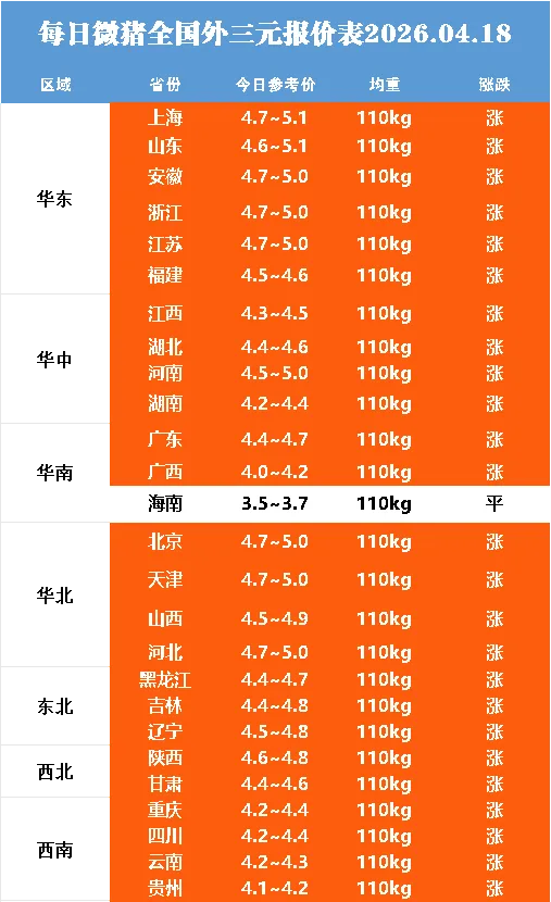 明日最新猪价2026.04.18——还是涨!点击蓝字关注 猪价不错过