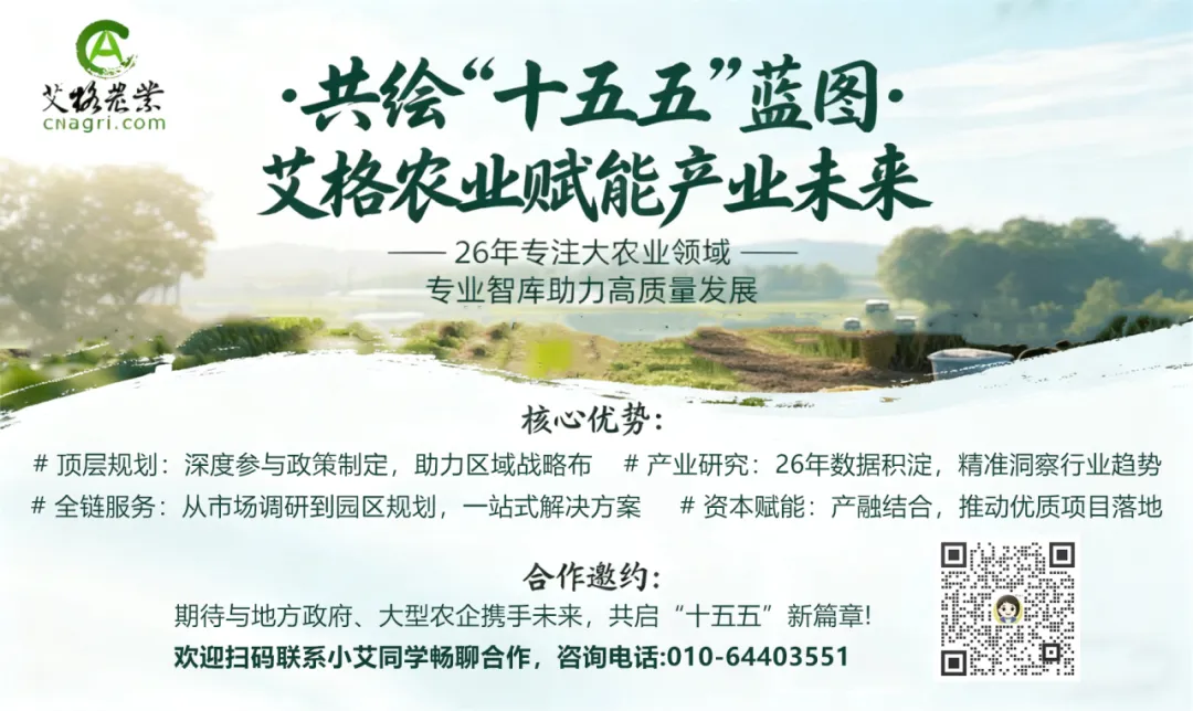 “十五五” 开局之年,艾格农业立足27年大农业与泛食品领域深耕积淀,依托全产业链数据积累、专业研究体系与项目落地经验,为政府与企业提供“十五五”规划服务,聚焦科技农业、绿色农业、质量农业、品牌农业协同发展,以系统化方案与实操性路径,护航规划落地见效,助力农业高质量发展与乡村全面振兴。