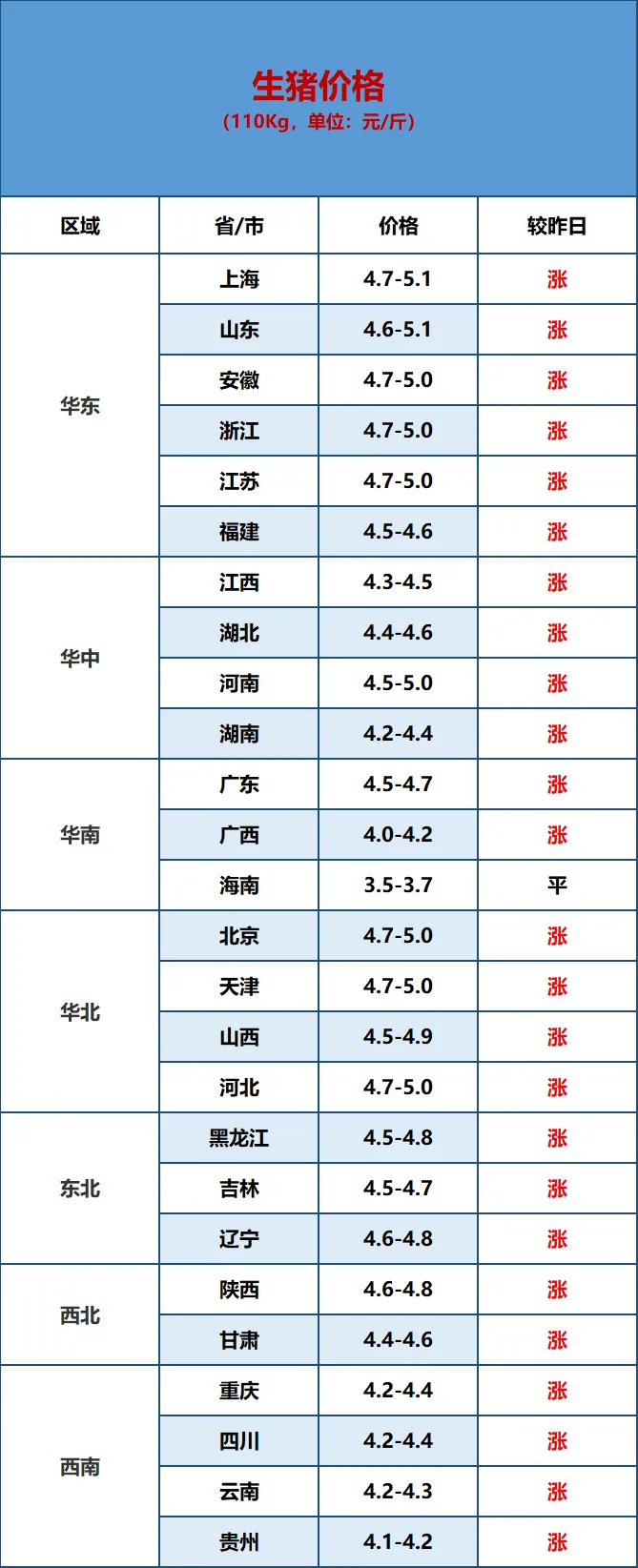 猪价日评:今日猪价窄幅上涨。中国主流市场出栏外三元、内三元及土杂商品大猪加权日均价较昨日价格上涨,全国生猪出栏加权日均价8.90每公斤,较昨日价格上涨1.27%。北方猪价拉涨。部分区域企业出栏减量,猪源供应下降,猪价短期企稳反弹,刺激二育参与积极性增加。屠企宰量有稳有增,部分屠企反馈目前低价有进行分割入库操作。南方市场猪价北调二育增多,出现跟涨。但需注意,当前供应仍宽松、消费处于淡季,此次上涨为超跌后的阶段性修复,非趋势反转,短期稳中偏强但反弹空间有限。 以上报价仅供参考! (资料信息、图片部分源自互联网,版权归原作者。如涉及作品内容、版权及其他问题请及时与我们联系,我们将在第一时间予以删除。本微信平台仅供参考,本微信平台拥有对此声明中的最终解释权。)