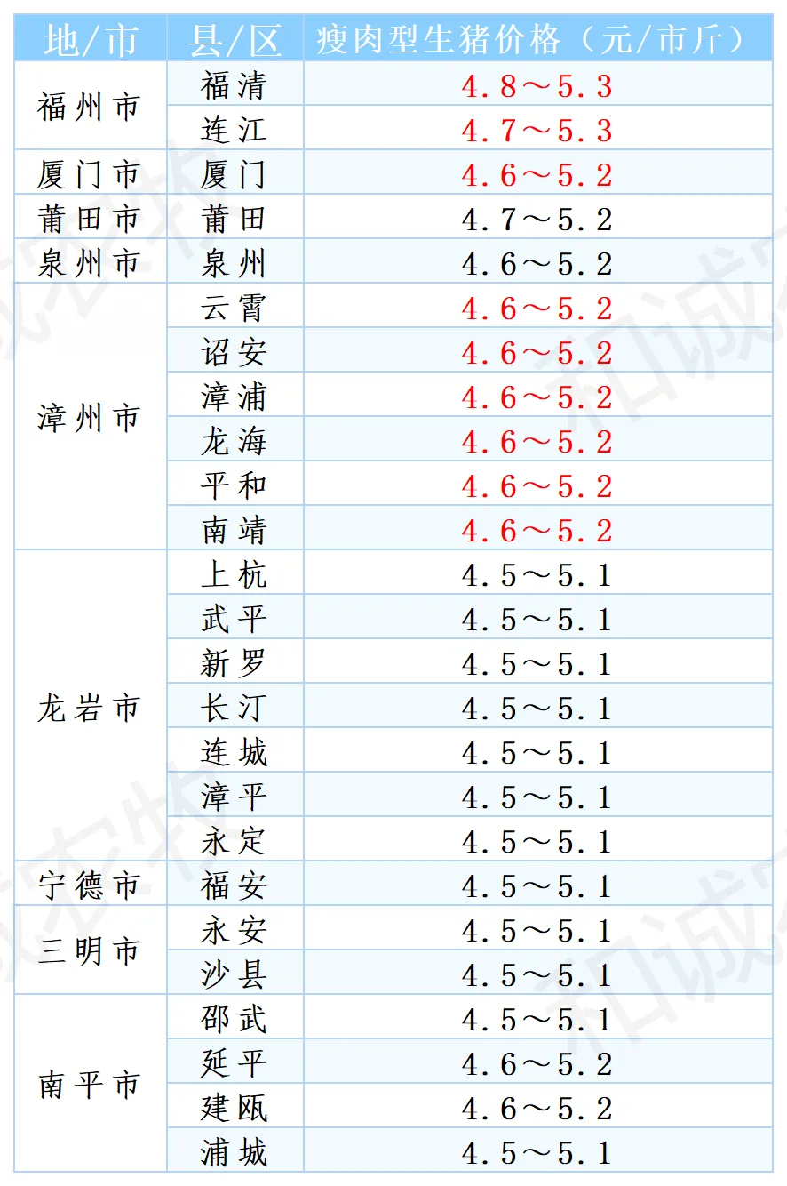 【猪价】2026.04.18福建各地区每日最新猪价