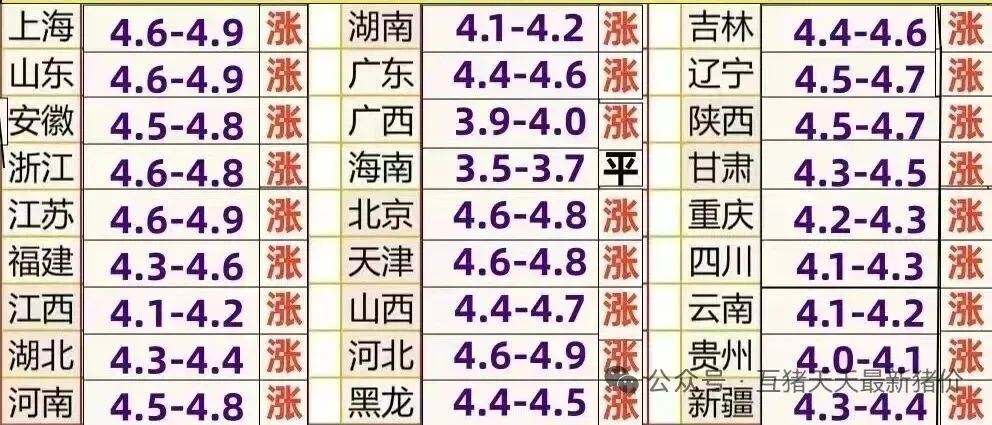 全线上涨!全国各地2026.4.19猪价