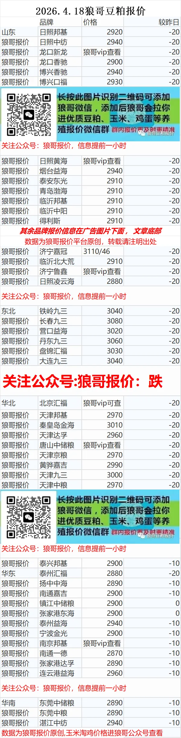 狼哥明日(4.19)鸡蛋价格预测,文末有豆粕下午报价