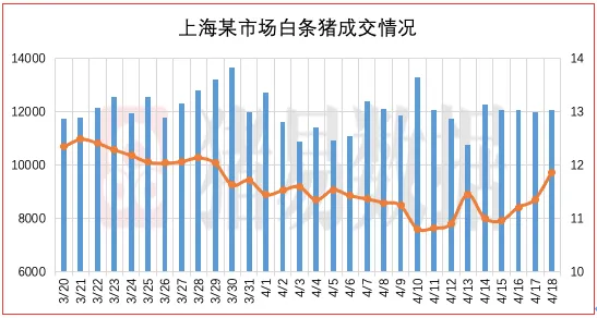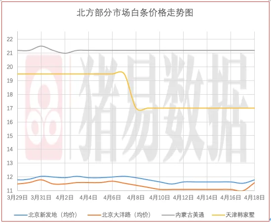 从今日北京、上海消费城市批发市场白条价格走势来看,北京、上海批发市场白条成交价格呈现跌涨调整,北京市场开磅价跌涨0.2-0.3元/公斤,市场成交均价表现转好,市场走货速度表现转差;上海市场价格呈现上涨,部分市场成交价参考11.87元/公斤,到货量有所增加,市场交易情绪表现一般,市场成交均价表现一般。