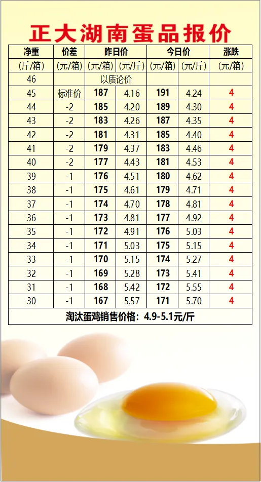 2026年4月19日正大湖南鸡蛋价格行情 养羊网 2026-04-19 2026年4月19日正大湖南鸡蛋价格行情合作请联系我们?了解最新蛋价行情,请关注正大湖南蛋品报价平台。 养羊网 2026-04-19 上一篇:2026年4月19日 湖北文燊蛋业鸡蛋价格 下一篇:全国猪价全线大涨,北方多地均价站上 4.95 元 / 斤!养殖户曙光初现,消费者该怎么办? 您可能还会对下面的文章感兴趣111: 相关文章 2025年4月13日全国各地生猪价格信息 近期价格更新!!! 乳山生蚝火了以后价格有点太离谱了吧 2025年4月13日全国各地生猪价格信息