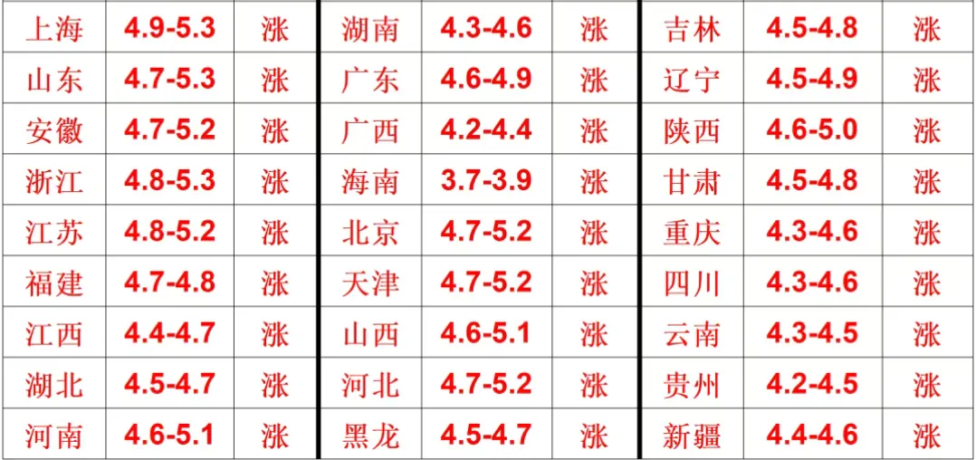 在养殖户们选择惜售的同时,一些规模化养殖场也纷纷减少出栏计划。根据目前的猪价表现来看,目前基层生猪主流价格已经迎来了连续性的上涨,现在全国生猪均价为每斤4.68元,在这一次猪价连续反弹的过程中,基层猪价的涨幅已经达到每斤0.33元。