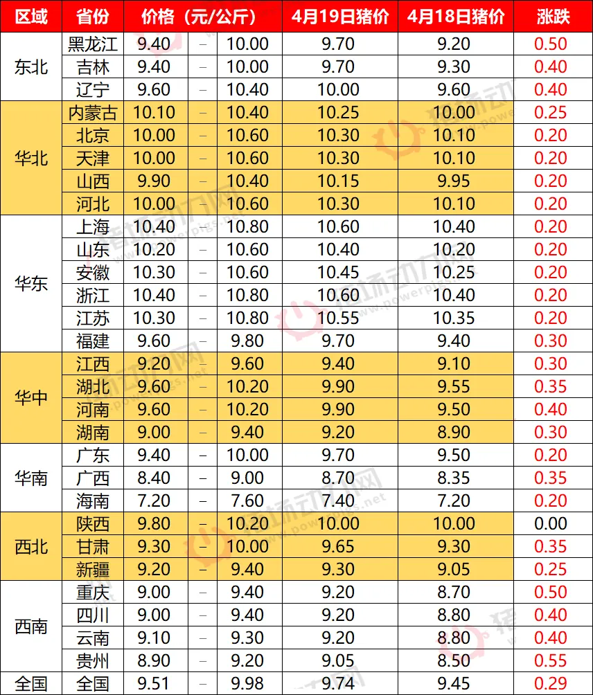 4月19日全国猪价继续全线大涨【动力猪价】