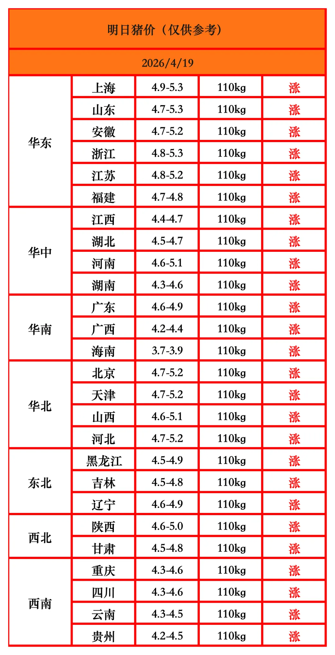 【明日猪价】接着涨,一片红!