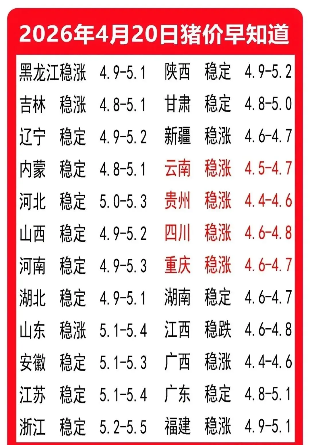 注意!猪价上涨要熄火?4-20明日各地生猪收购价来了!