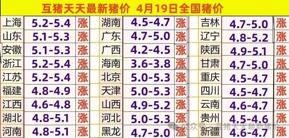 猪价继续稳步上涨!龙头企业有所增量!4.19 全国生猪市场价格汇总及行情简析