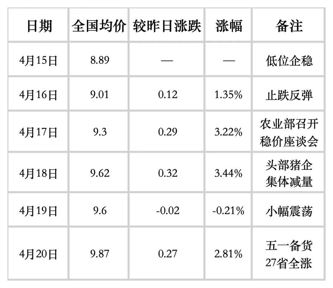猪价连续大涨!4月20日全国均价9.87元/公斤