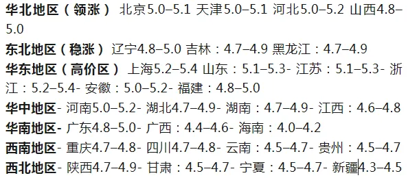 整体走势:全国均价 4.85–4.95 元/斤,小幅上涨 0.05–0.1 元/斤,北强南弱格局明显。