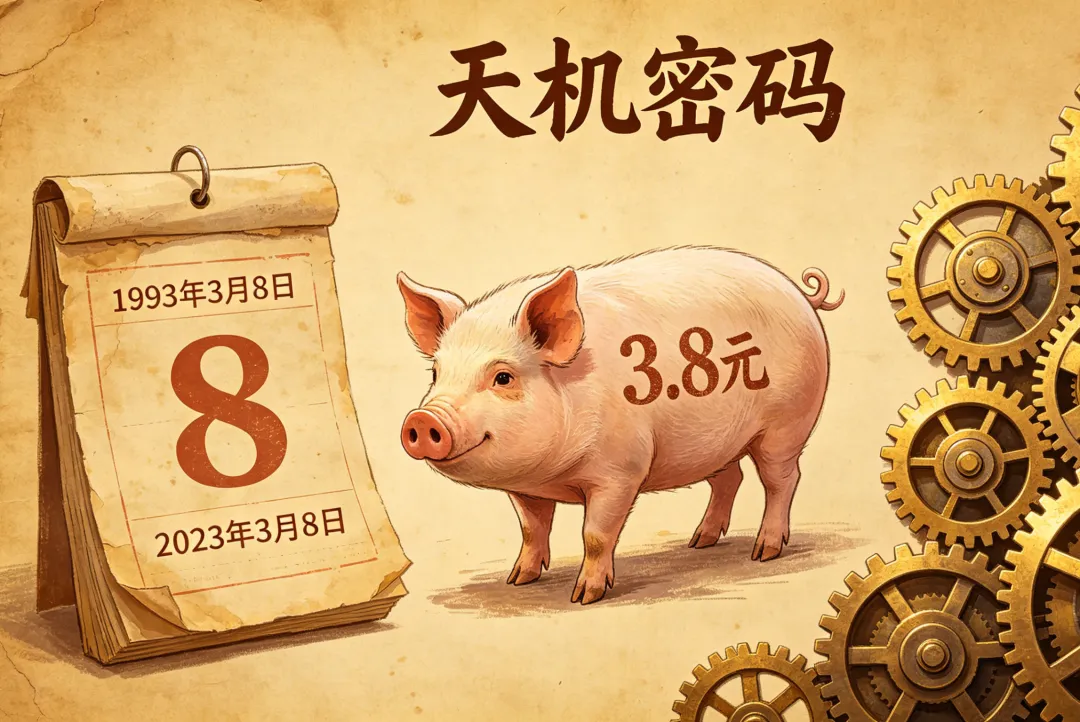 猪价 3.8 元,一个跨越三十年的 “密码”数字沉默不语,时间自会替它发声。 你是否曾留意过,世间有些数字一旦出现,便像命运在暗处敲响警钟?它不声张,不解释,却在三十年里,三次精准踩在时代的拐点上。 1996 年,猪价 3.8 元 / 斤。两年后,亚洲金融风暴席卷而来。 2006 年,猪价重回 3.8 元 / 斤。两年后,全球金融危机席卷世界。 2026 年,猪价再一次跌到 3.8 元 / 斤。—— 那么,两年后的 2028 年,又将是什么? 这早已不是简单的经济学。这是时间的玄学,是藏在烟火人间里的周期密语。