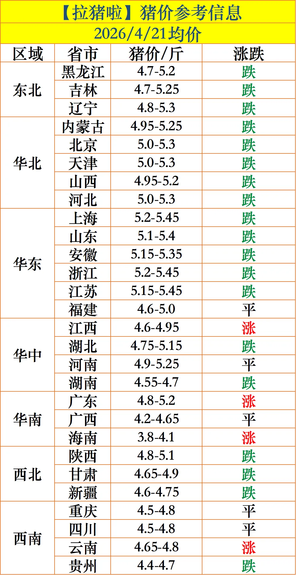 【拉猪啦】4.21-猪价行情与买卖猪信息!(多地下跌!采购难度减弱!)