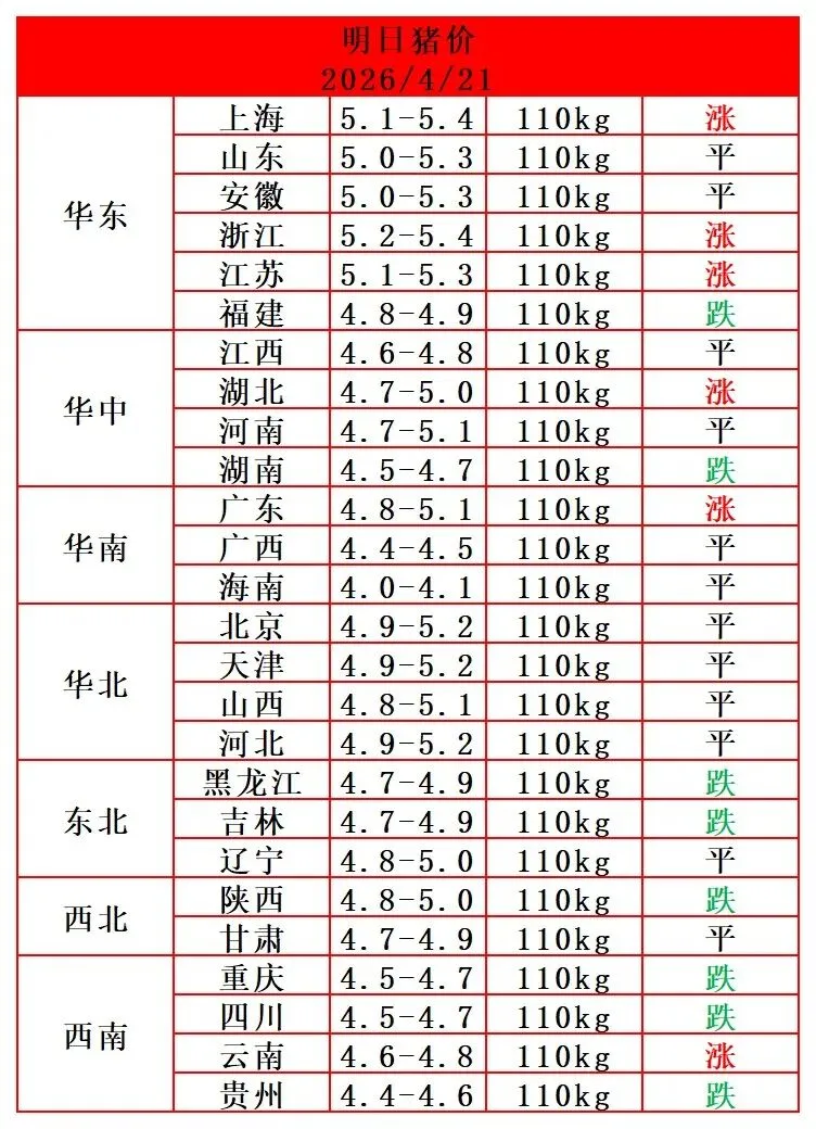 【明天】-2026年4月21日-全国猪价(好消息,上涨)