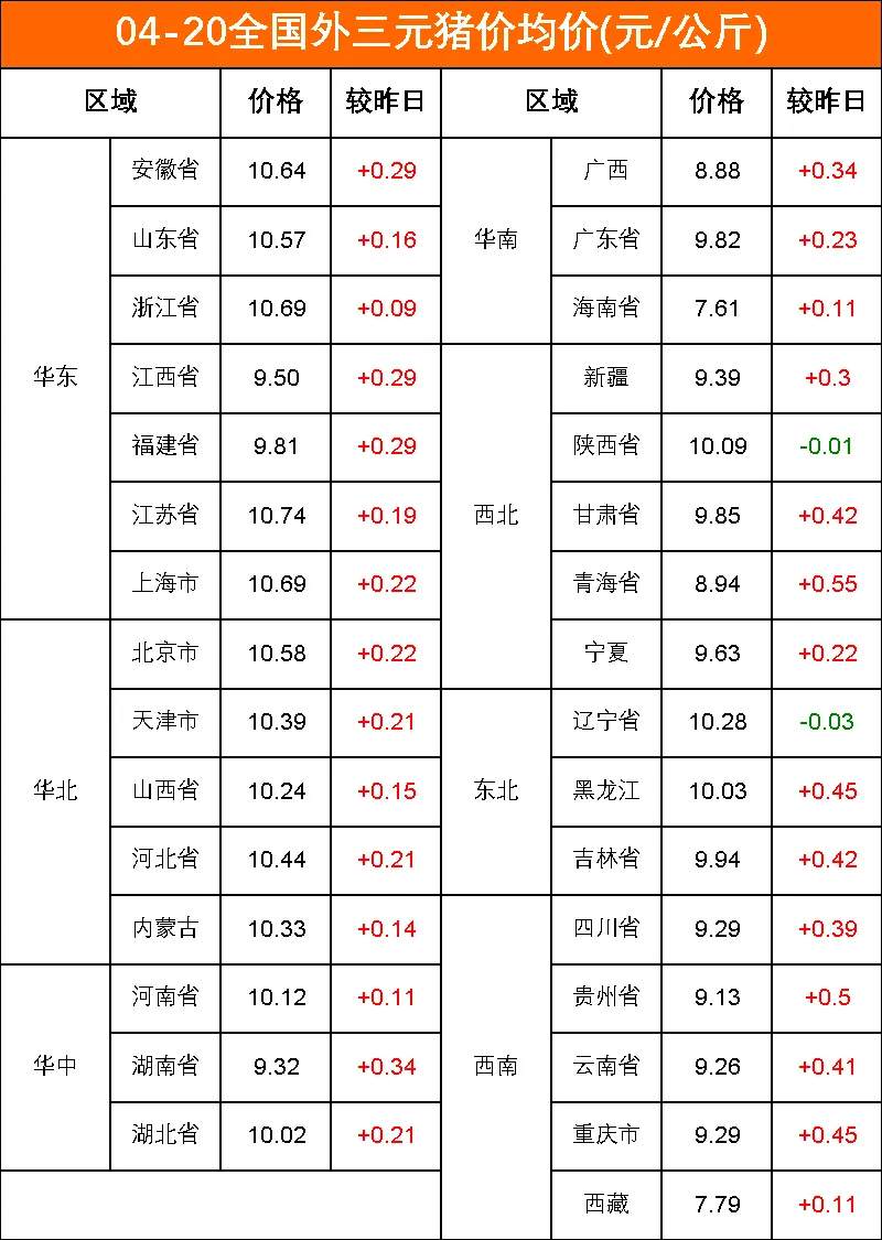 今日猪价:2026-04-20