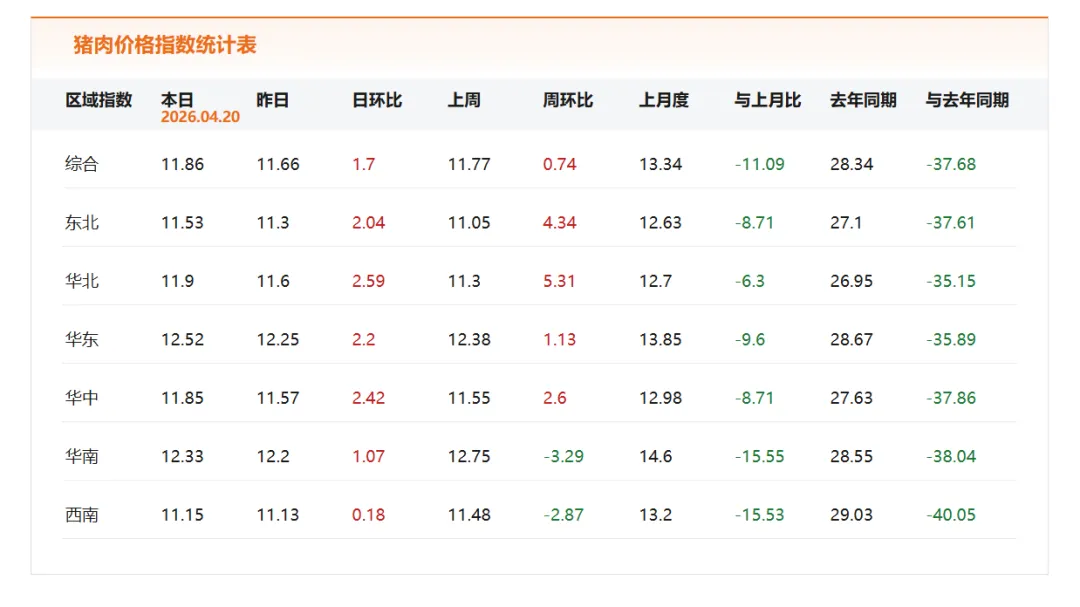 2026年04月20日(单位:元/公斤)
