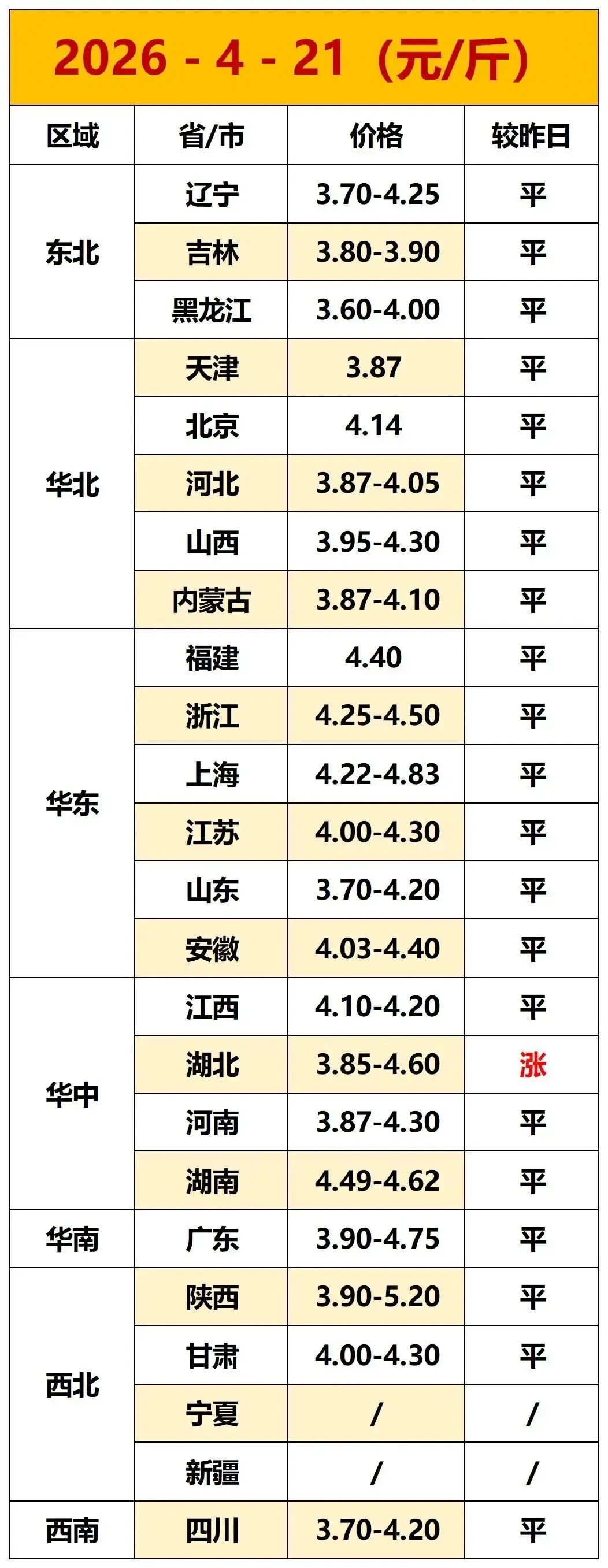 【明天】-2026年4月21日-全国鸡蛋价格(平稳)
