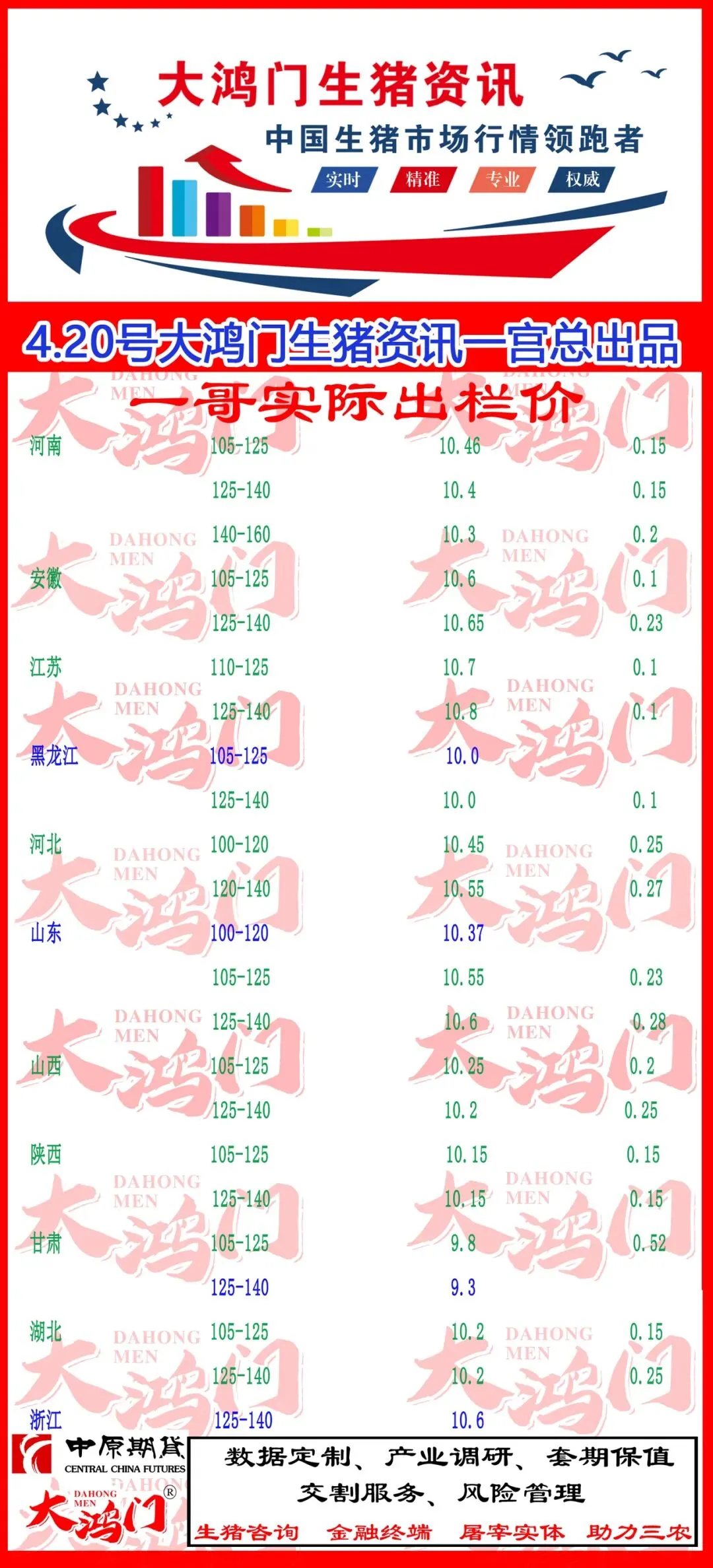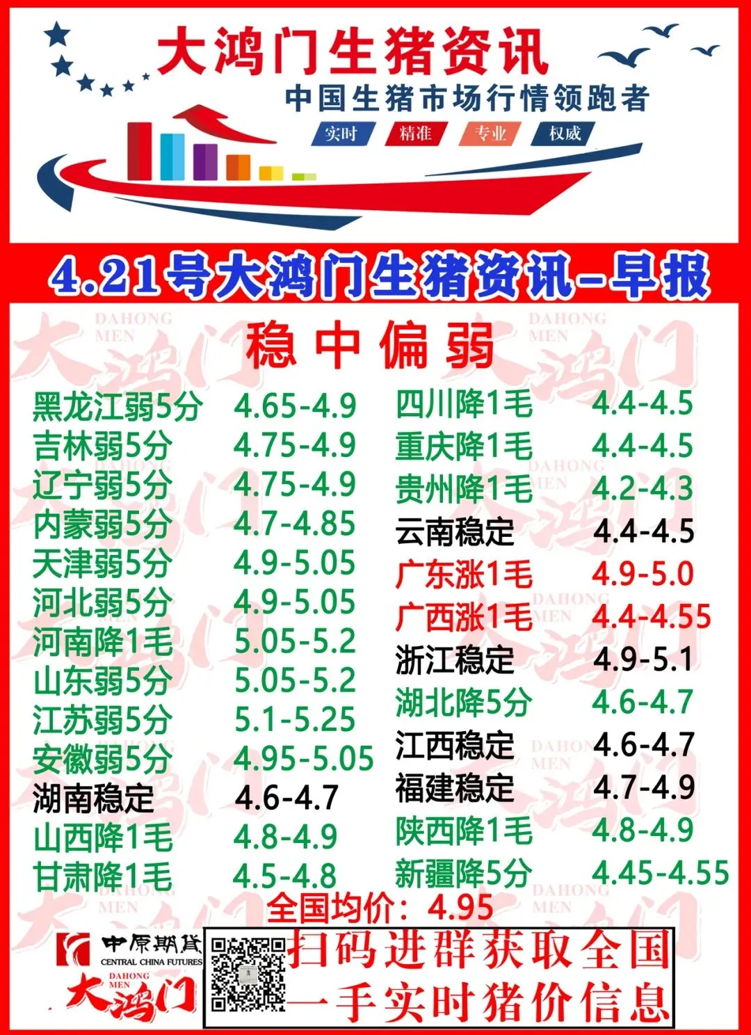 2026年4月20日西南养猪公司销售指导价格:四川4.75元/斤(稳定),川南4.75元/斤(稳定),重庆4.8元/斤(稳定)