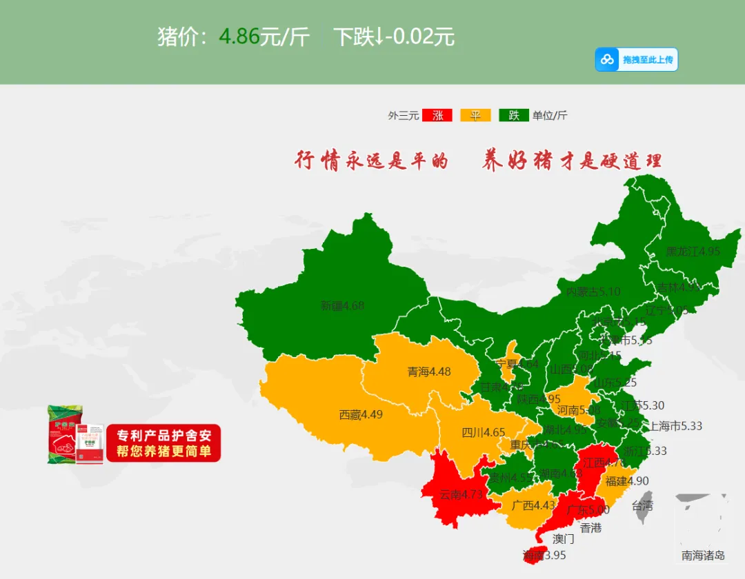 4月21日,外三元标猪价格出栏均价在9.72元/公斤,再次飘绿。