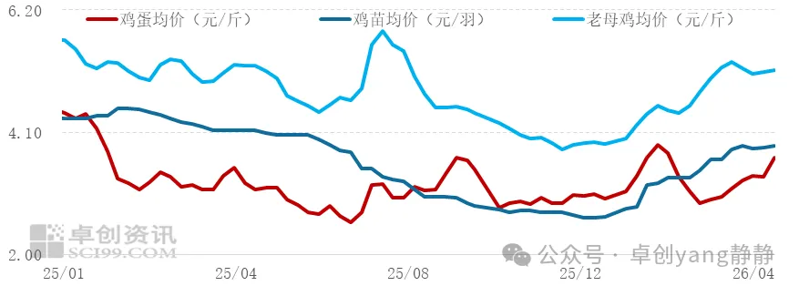 从供需基本面看,长期压制仍在:供应端新增产能持续释放、淘鸡意愿低迷,短期难有实质性收缩;需求端节日拉动效应减弱、备货周期缩短,5-6 月梅雨季、7-8月高温季需求持续低迷,仅学校、食堂等刚需提供底部支撑;替代品方面,生猪价格探底、猪肉低价持续分流鸡蛋需求,进一步抑制蛋价上行空间。