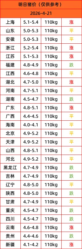2026年4月21日 明日猪价,多地上涨 最新猪价行情!