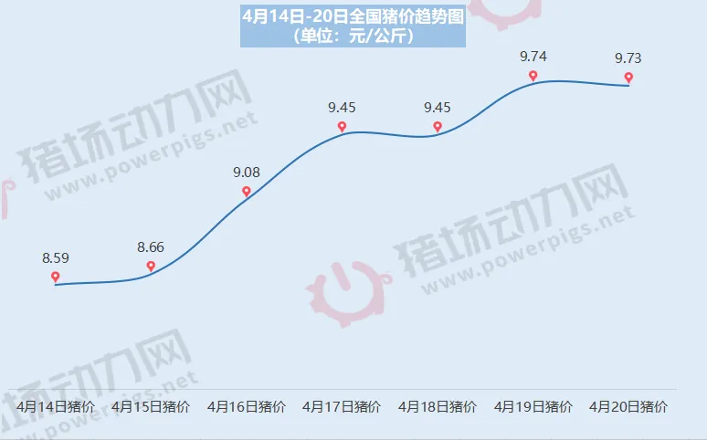 这两天,猪价迎来了久违的“五连涨”,从4月14日的最低点8.59元/公斤,一路上涨到了4月19日的9.74元/公斤,五天内涨了将近1块2!不过,这股连涨的势头,在今天被正式终结,猪价上涨似乎动力又不足了!