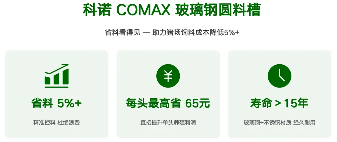 保育育肥场只需要更换料槽等基础设施,每头猪就可以轻松降低 50 元成本,而且投资回收期不超过 6 个月!