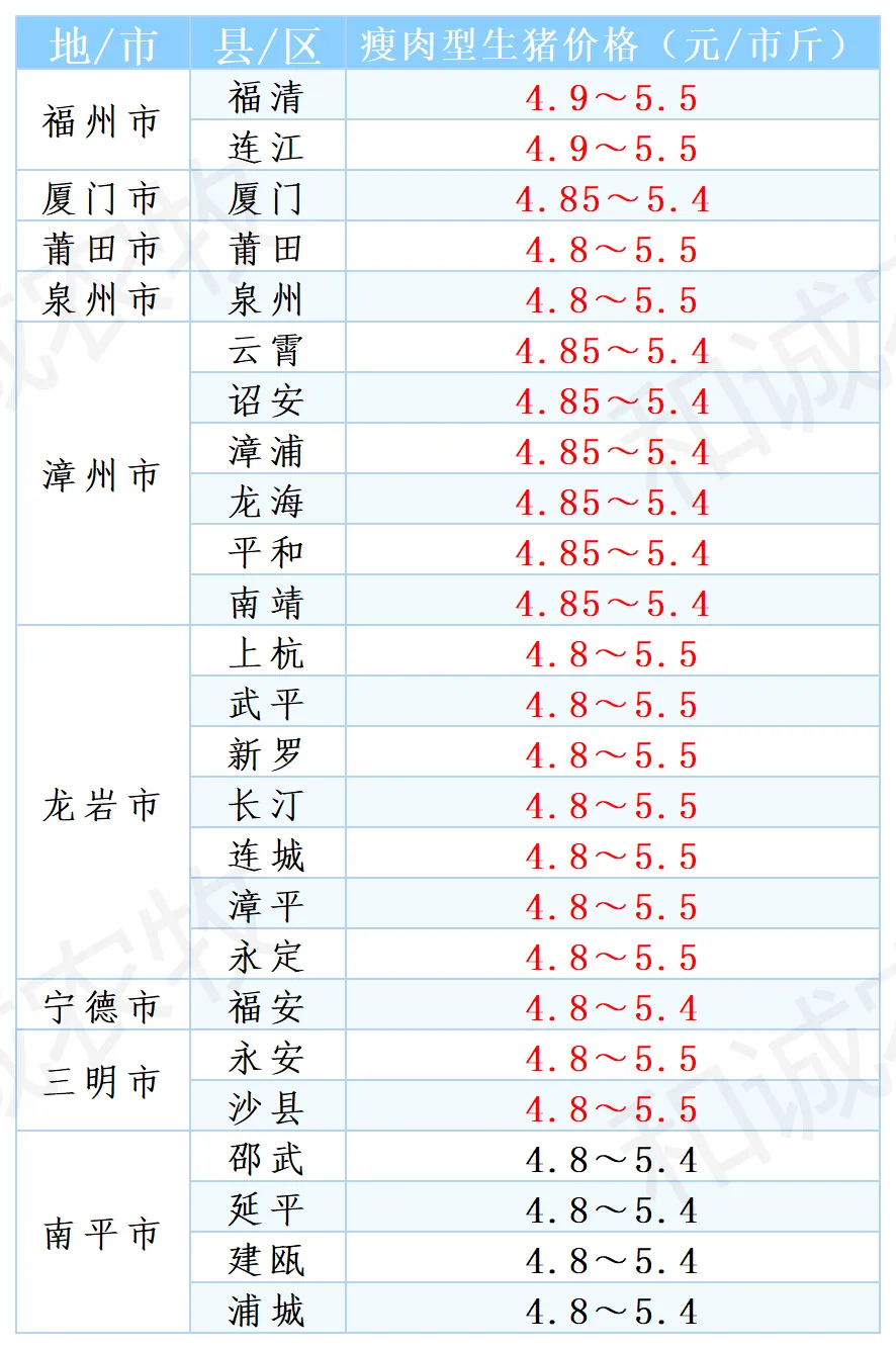【猪价】2026.04.21福建各地区每日最新猪价