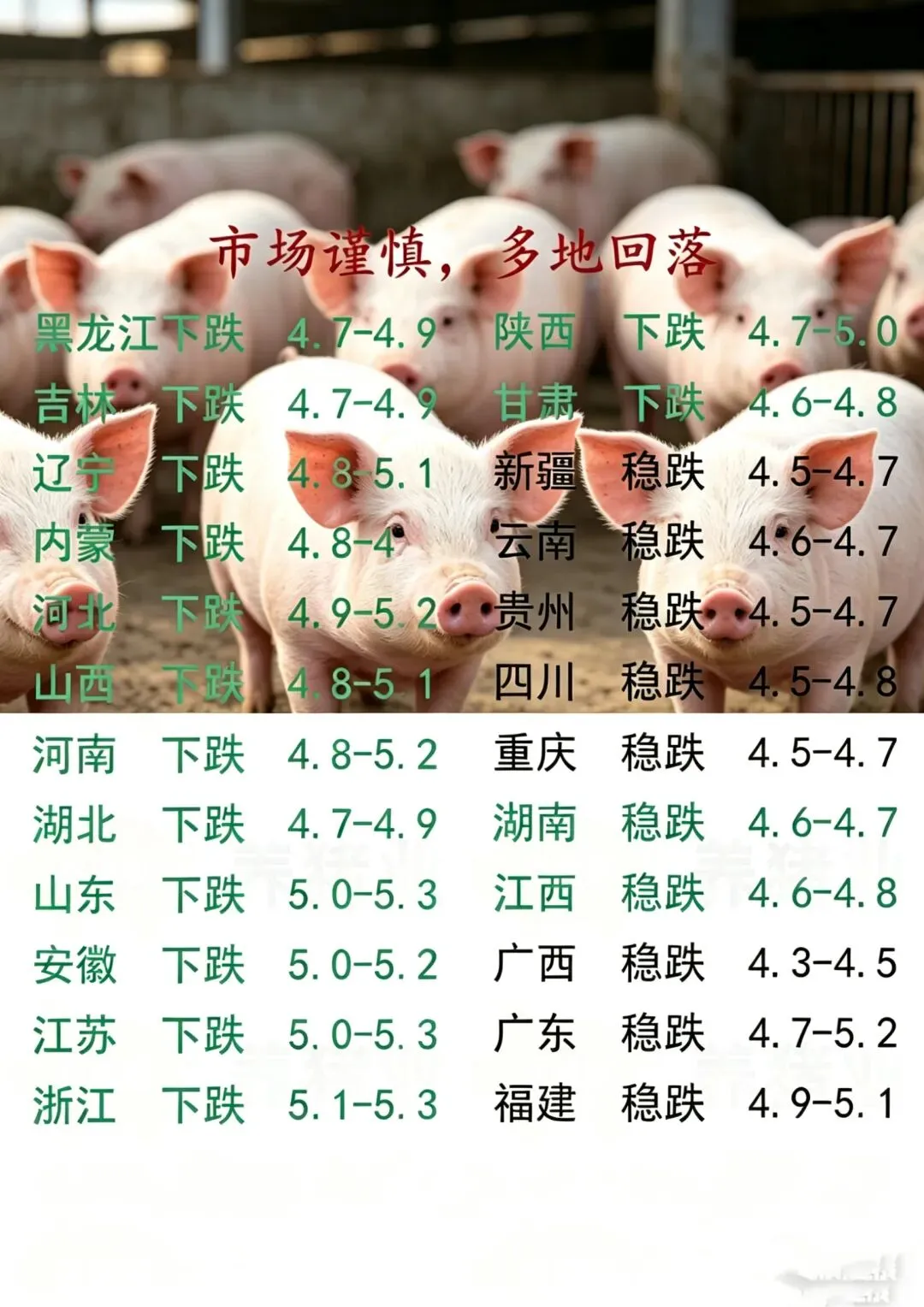 2026.4.22明天猪价,一片绿,如坐五天过山车!(附:广东温氏最新生猪报价) 养羊网 2026-04-21 2026.4.22明天猪价,一片绿,如坐五天过山车!(附:广东温氏最新生猪报价) 养羊网 2026-04-21 上一篇:2026年4月21日 川渝鸡蛋价格参考! 下一篇:2026.4.21-今日最新猪价 您可能还会对下面的文章感兴趣111: 相关文章 3月14日贵州鸡蛋价格参考 2026.03.06猪价信息 2025年4月13日全国各地生猪价格信息 ? 牧光点亮乡村,青春绿动未来 ?