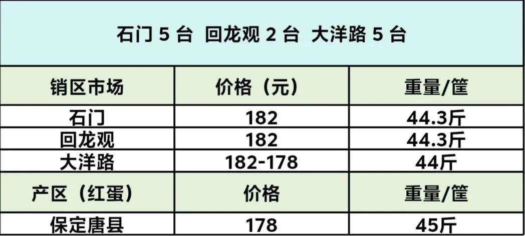 大洋路鸡蛋价格2026年 4 月 21 日报价 养羊网 2026-04-21 大洋路鸡蛋价格2026年 4 月 21 日报价大洋路5台,价格 182-178 元,走货不快,截至中午余货1台,明日回车预计 4台附近。 养羊网 2026-04-21 上一篇:2021.9.16┃猪价早知道 下一篇:羊肠道疾病治疗,养羊户必看的实用指南 您可能还会对下面的文章感兴趣111: 相关文章 全网呼叫兔场管理人员,以及养兔子的老板。 猪价跌破5元,饲料却逆势上涨!2026年,养猪散户困局还能扛多久? 2025年4月13日全国各地生猪价格信息 2025年4月13日全国各地生猪价格信息