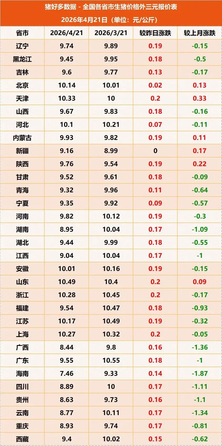 ▼ 往期精彩回顾 ▼ 猪价“涨势如虹”!生猪现货、期货同步大涨,五一备货助推行情! 上涨“拦不住”!全国31省市猪价继续“飘红”,超跌反弹仍有空间 全面反弹!猪价连续两日大幅拉涨,市场发生了啥? 3904万头!一季度能繁母猪减57万头,业内最新研判猪价拐点 刚刚!国家统计局:一季末生猪存栏42358万头,增长1.5%
