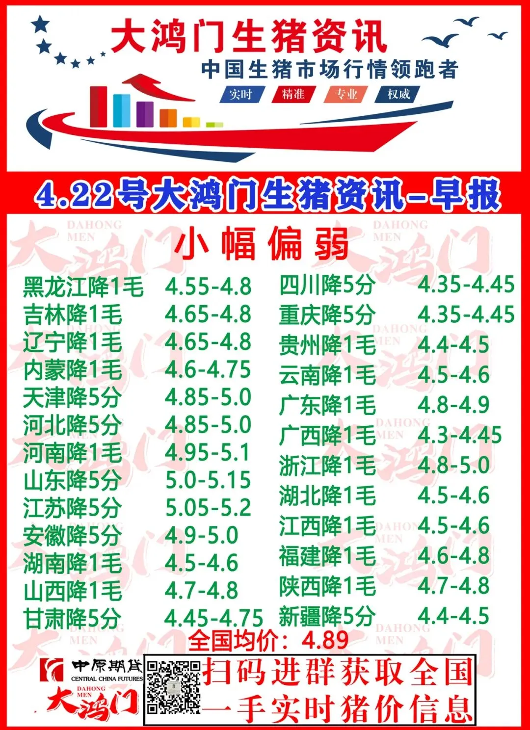 2026年4月22四日大鸿门猪价:小幅偏弱(明天企业的降幅决定接下来的走势)