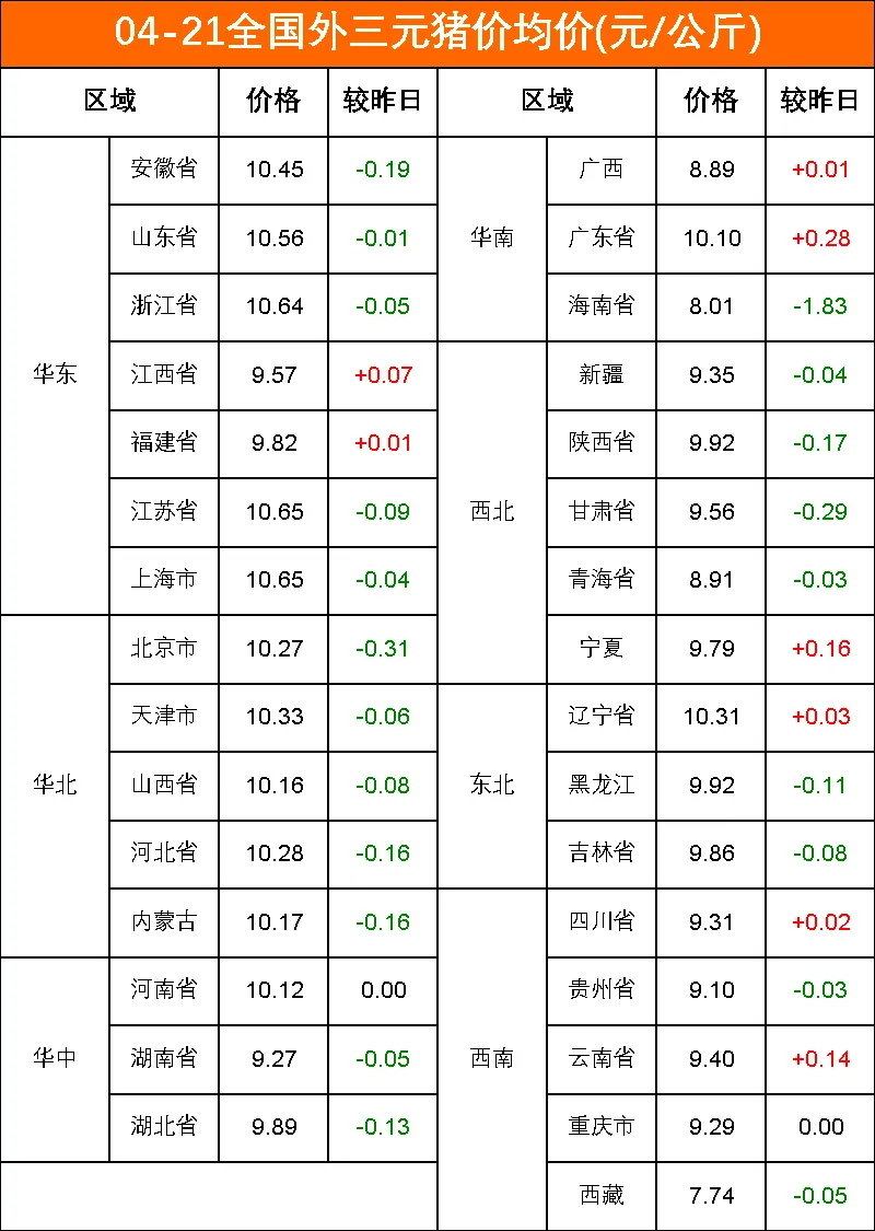 04.22明日猪价早知道,04.22全国最新猪价信息,又是全地区飘绿!