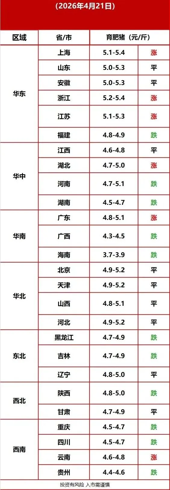 4月21日猪价 养羊网 2026-04-21 4月21日猪价每日猪价行情4月21日猪价点点赞推 荐 阅 读中东战火如何烧高我们的猪饲料?养猪人必看的成本预警!真金白银!温氏股份拟最高12亿回购,向市场释放最直接信号美国大豆想回中国餐桌?13%关税挡路,巴西笑了www.chinabreed.com中国养殖网编辑:郑高兴来源:中国养殖网、网络 养羊网 2026-04-21 上一篇:今日鸡蛋价格(2026.4.21) 下一篇:养羊不消毒,全年白忙忙! 您可能还会对下面的文章感兴趣111: 相关文章 2025年4月13日全国各地生猪价格信息 11.20今天4??只?到手? 到处都是赚钱的路子,但你只会打工 2025年4月13日全国各地生猪价格信息