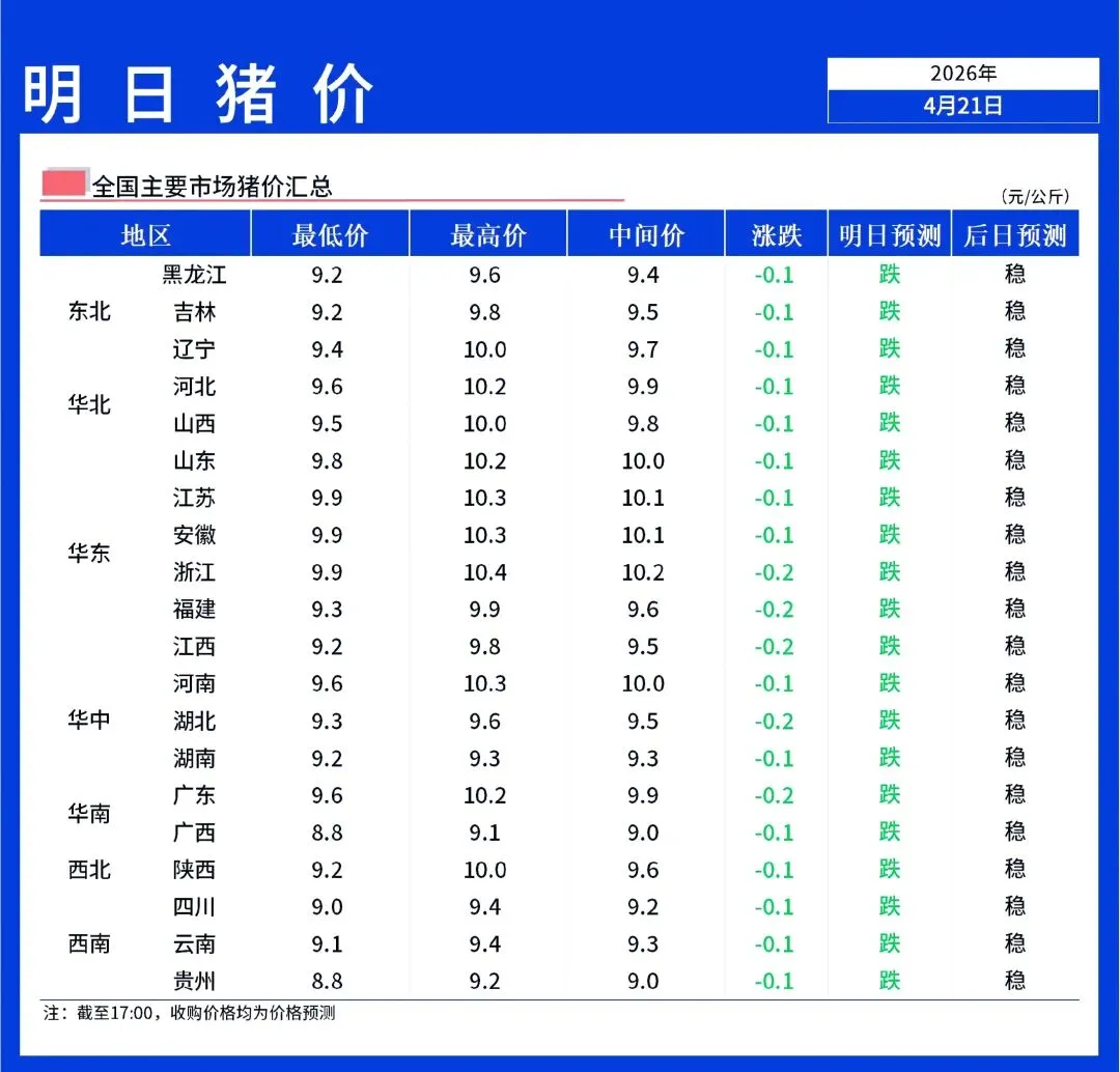 【明天猪价】4月22日全国猪价继续下跌!