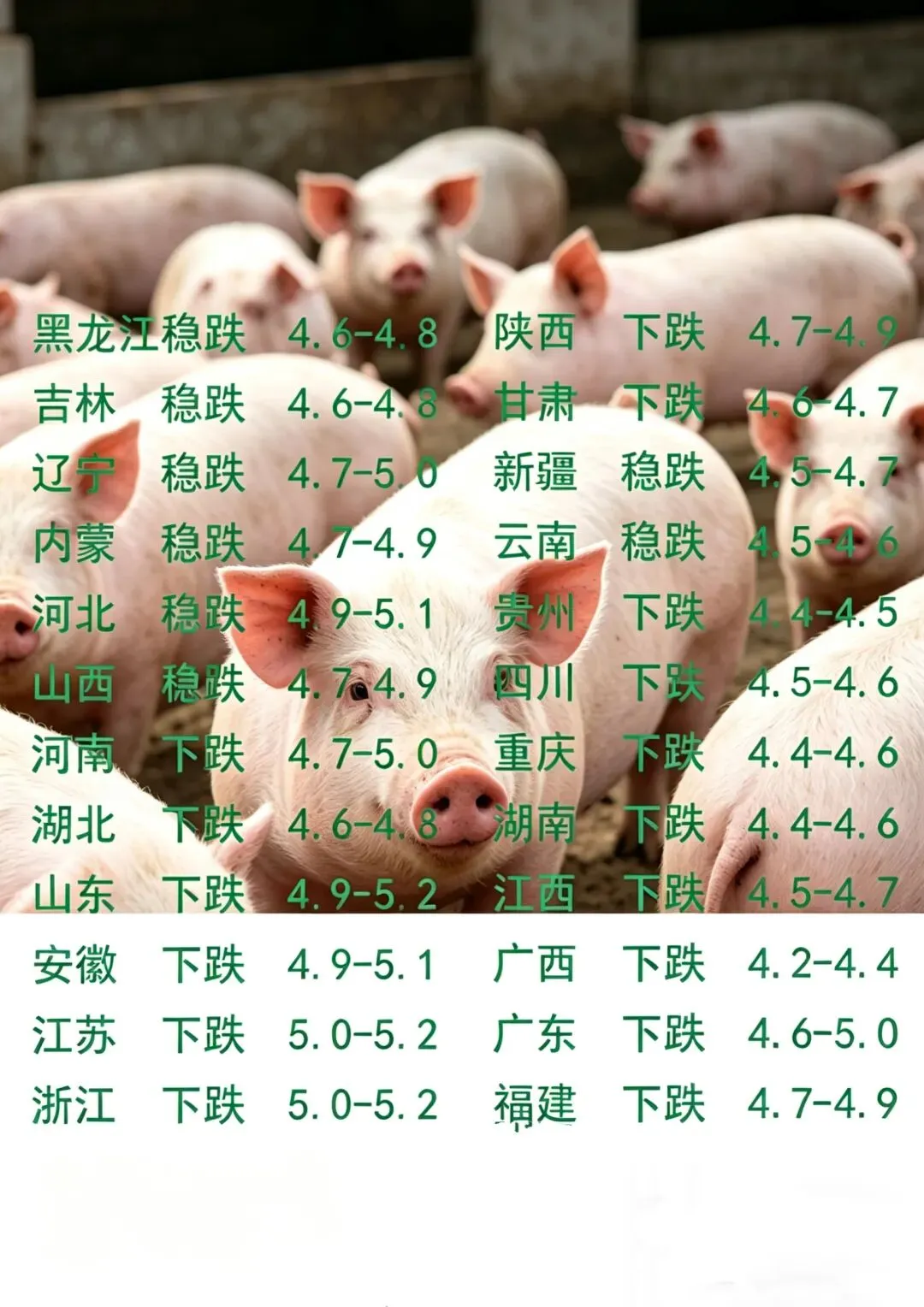 2026.4.23明天猪价(附:广东温氏最新生猪报价) 养羊网 2026-04-22 2026.4.23明天猪价(附:广东温氏最新生猪报价) 养羊网 2026-04-22 上一篇:2026年4月22日-最新猪价 下一篇:今日猪价(2026.04.22) 您可能还会对下面的文章感兴趣111: 相关文章 瑜伽生活空间 【养猪行情】2026.03.11-猪价行情! 有知道的贝贝吗 3月13日贵阳鸡蛋价格参考