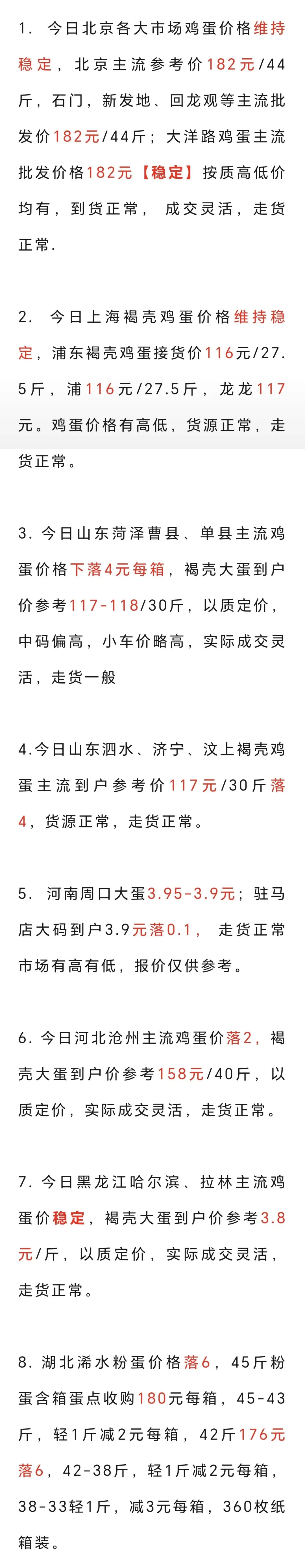 2026年4月22日各地鸡蛋价格 养羊网 2026-04-22 2026年4月22日各地鸡蛋价格 养羊网 2026-04-22 上一篇:4月24日猪价:全国一片稳!五一前能否反弹?养殖户该卖还是该等?深度分析来了! 下一篇:鸡蛋价格飞涨、抓住机遇[拳头][拳头][拳头][拳头] 您可能还会对下面的文章感兴趣111: 相关文章 3月8日我国部分地区鸡蛋、淘汰鸡价格汇总 2月国内猪价短暂冲高后回落,农历春节前市场供需关系总体偏宽松 今日猪价:(2026.2.7)全国最新生猪价格行情涨跌表—打破“猪周期”,养殖户如何构建自己 循环农业现代农旅综合体规划案例分享