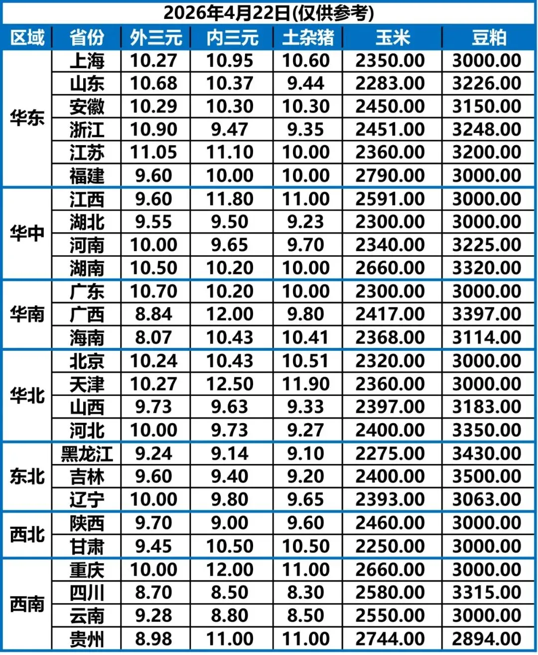 4月22日 | 正业生物猪价快报!