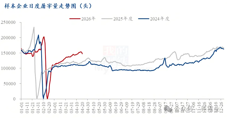 当前产能供应仍处高位,南方市场走货不畅,叠加压栏猪源出栏压力,价格短期存在走低可能。但进入4月下旬,养殖端出栏节奏多维持正常,加之五一节前备货需求支撑,猪肉价格大概率跟随猪价震荡偏强,即便后续有所回调,也不易再跌回前期低点。展望5月,供应压力或有所缓解,需求端较为疲软但整体变化或较为有限,价格有望继续修复。